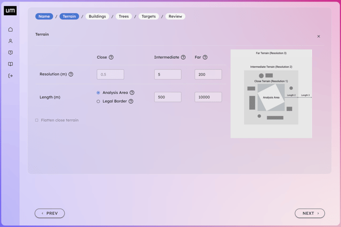 - Increase the Intermediate Terrain length to increase the area the includes buildings for obstruction or visual reference purposes.