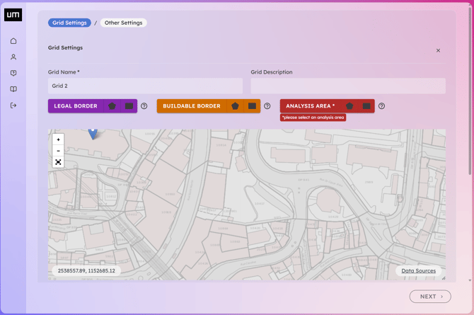 5. Set Grid Angle, use default N-S direction or align it to the main border/facade.